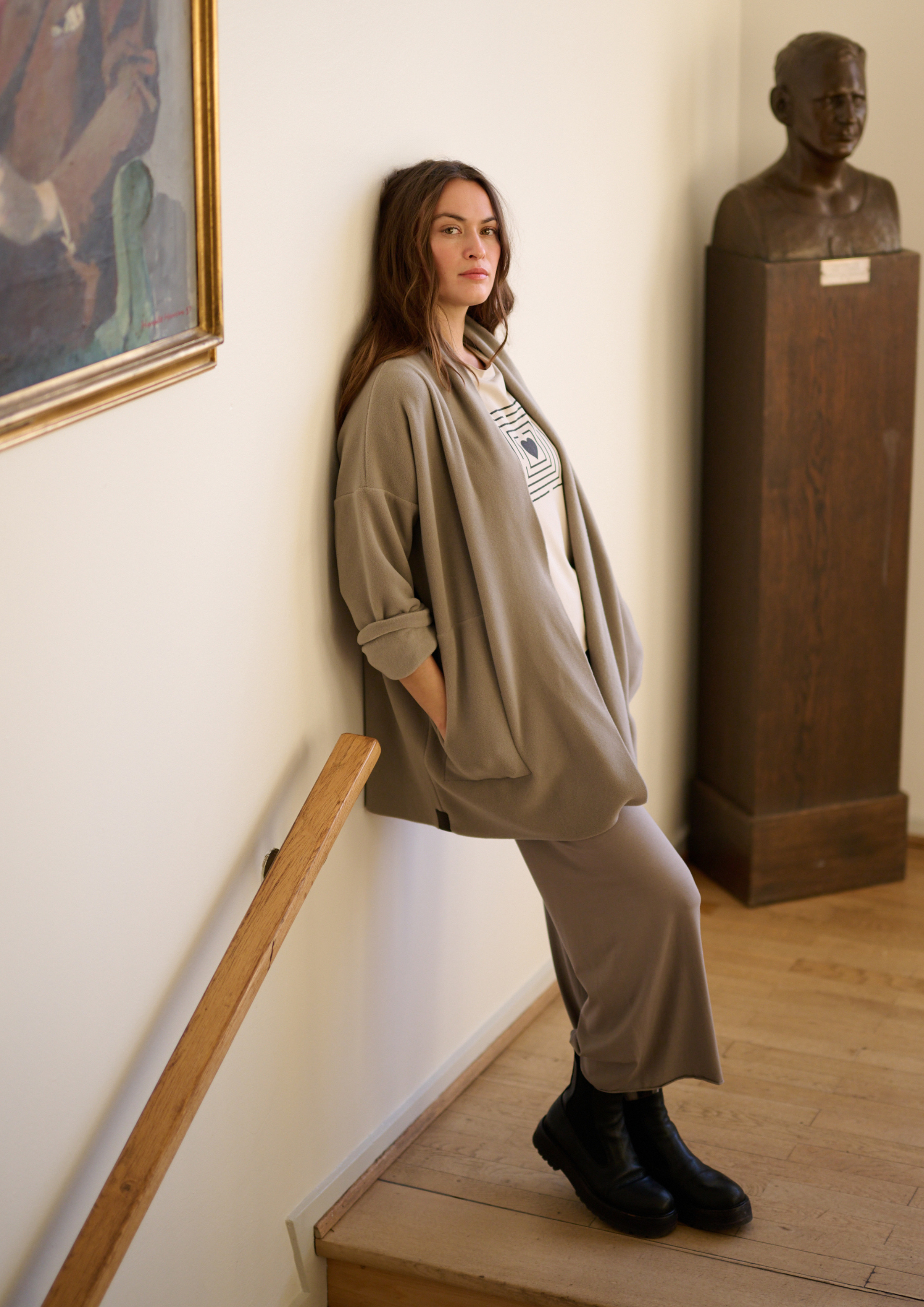 Laut unserer Philosophie möchten wir es dir ermöglichen, die Kollektionen zu kombinieren und mit dem zusammenzustellen, was du bereits besitzt. Unsere grundlegende Farbenwelt sind weiche, ruhige klassische Farben, die an Erde, Holz, Steine, Wasser und Sand erinnern. Im Laufe eines Jahres entwickeln wir ab und zu Farben, die mehr Kraft und Fülle haben, die deinem Look einen Hinguckereffekt verleihen. Vielleicht reicht dir ein Schal in einer kräftigen Farbe, wo andere von einem langen Cardigan träumen.