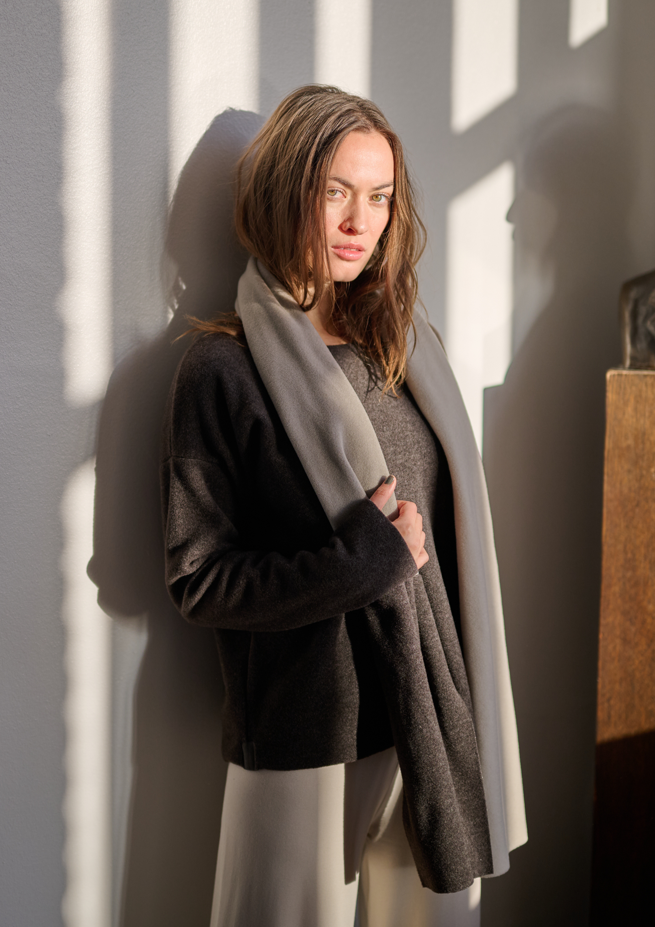 Laut unserer Philosophie möchten wir es dir ermöglichen, die Kollektionen zu kombinieren und mit dem zusammenzustellen, was du bereits besitzt. Unsere grundlegende Farbenwelt sind weiche, ruhige klassische Farben, die an Erde, Holz, Steine, Wasser und Sand erinnern. Im Laufe eines Jahres entwickeln wir ab und zu Farben, die mehr Kraft und Fülle haben, die deinem Look einen Hinguckereffekt verleihen. Vielleicht reicht dir ein Schal in einer kräftigen Farbe, wo andere von einem langen Cardigan träumen.