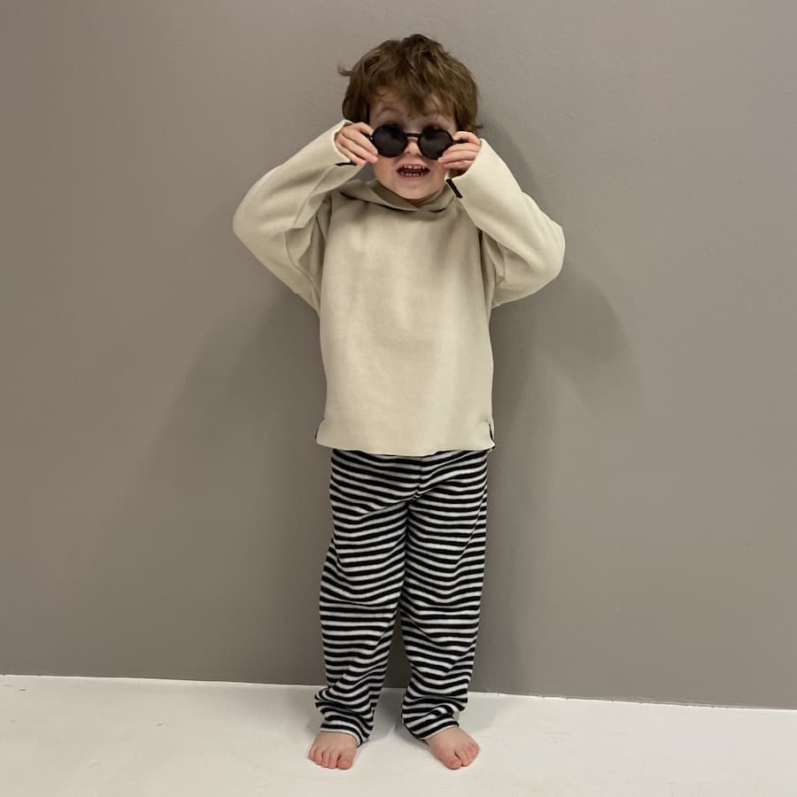 Kinder zu bekommen ist eine Investion in Liebe und Sorge, aber auch etwas, das sich im Budget niederschlägt. Daher sind unsere Designs, Farben und Qualiät so gewählt, dass sie lange halten und an Geschwisterkinder weitergegeben werden können. Unsere Kleidung ist so designt, dass sie auch an Armen und Beinen aufgekrempelt toll aussieht! Das verlängert ihre Lebensdauer, und Sie müssen nicht regelmäßig neue Fleecepullover kaufen, da die Ärmel wieder zu kurz geworden sind. Bei vielen Marken muss man Kinderkleidung 1 bis 3 Größen größer kaufen, das ist bei uns nicht nötig. Der Abstand zwischen den Kleidungsgrößen passt zum Wachstumssprung des Kindes, das erleichtert die Kaufentscheidung. Da unsere Kinderkleidung nicht eng anliegend ist, ist es nicht schwer, sich in den verschiedenen Größen zurechtzufinden. Deswegen eignen unsere Designs sich auch gut als Geschenke, die sicher nicht umgetauscht werden. Lesen Sie hier mehr über unsere Größen und Passform. Ein Fleecepullover in guter Qualität kann das ganze Jahr über getragen werden. Wird der Pullover im Sommer als für die kühleren Tage gekauft, lassen sich die rmel noch hochkrempeln, und ein halbes Jahr später passt er dann als warmer Pullover beim Spielen im Haus oder als extra Schicht im Schneeanzug, wenn es im Winter zum Toben in den Garten geht.